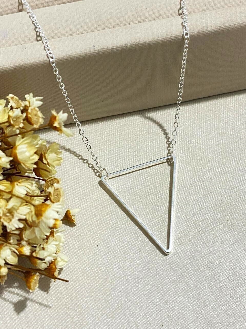 Este colar com pingente de triângulo vazado em semijoia de prata é mais do que apenas uma peça de moda. É um símbolo de elegância simplificada e sofisticação discreta.